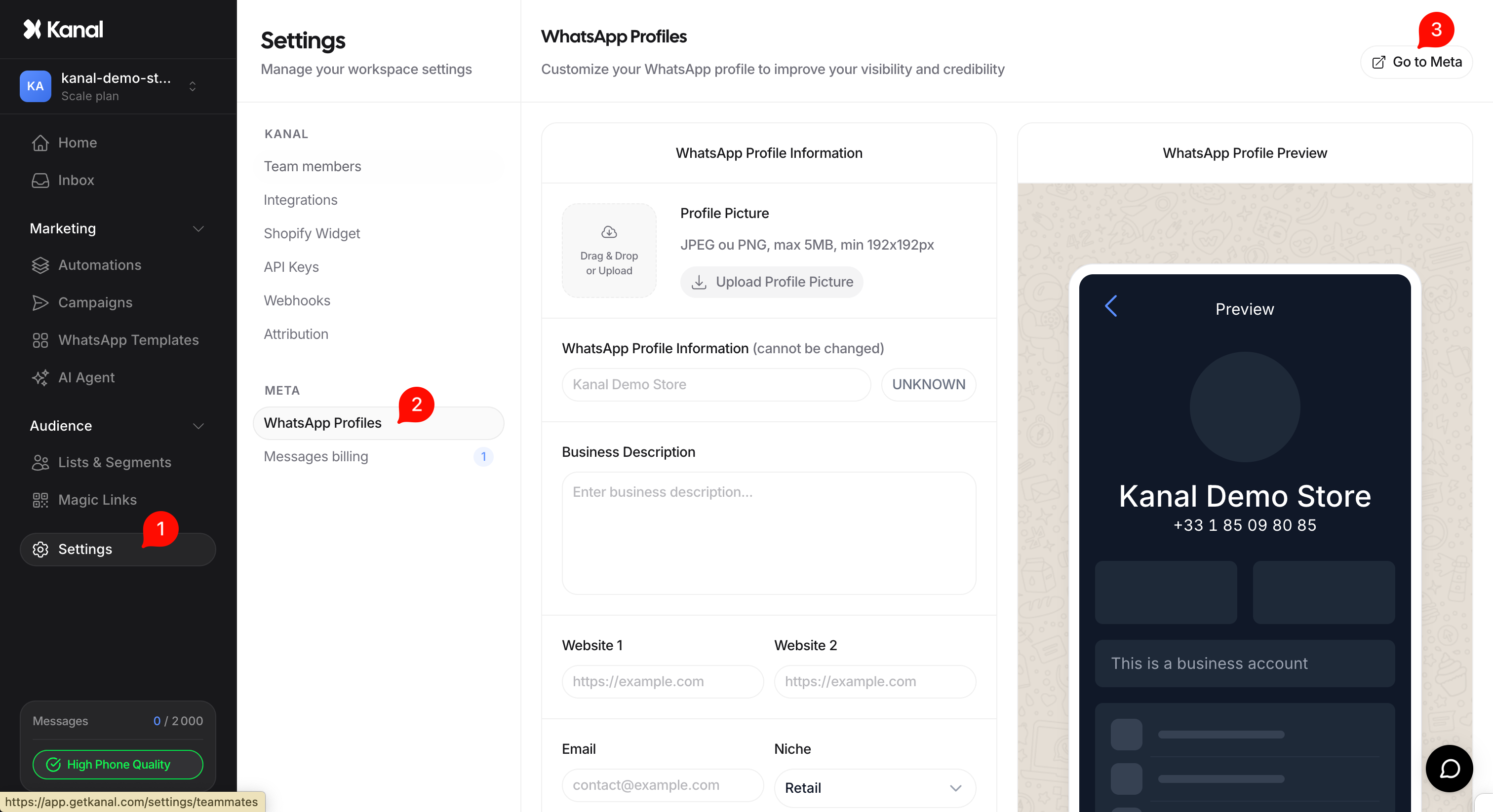 Cliquez sur le bouton Go to Meta. Vous serez redirigé vers le gestionnaire WhatsApp de Facebook.