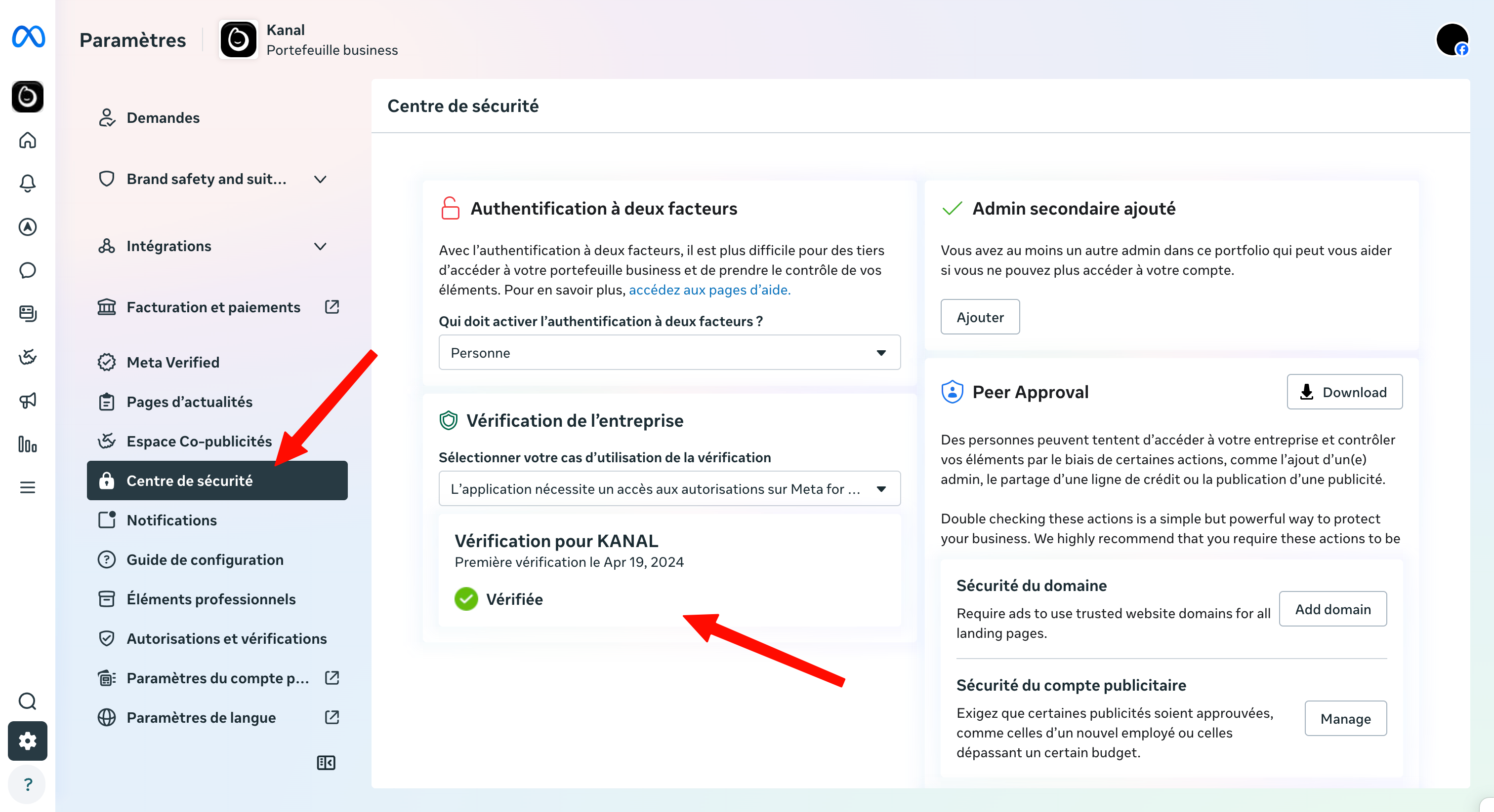 Recherchez la section "Vérification de l'entreprise" et cliquez sur Démarrer la vérification.